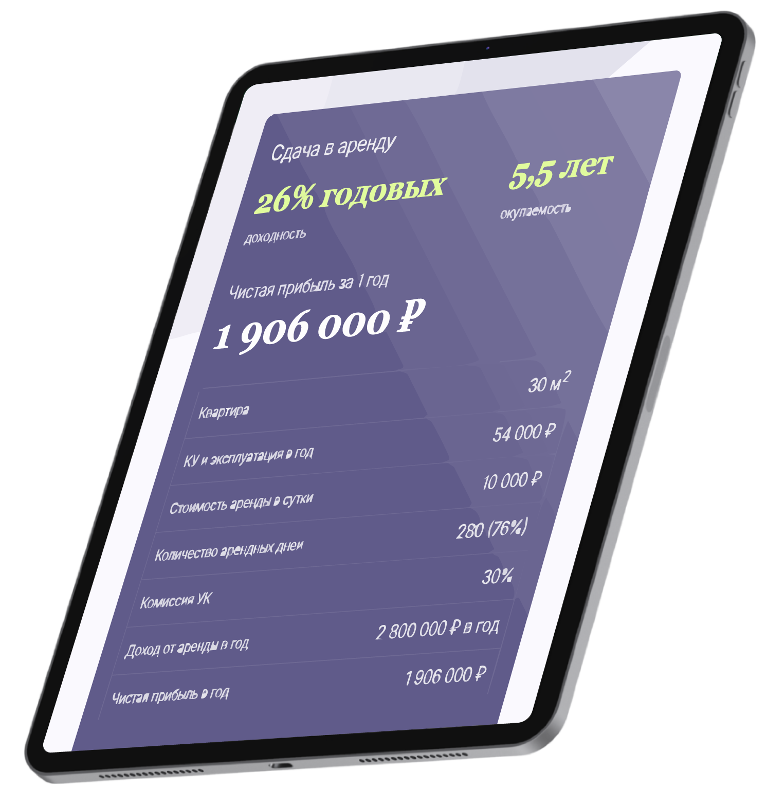 | Доход от аренды в год: | 2 800 000 ₽ |