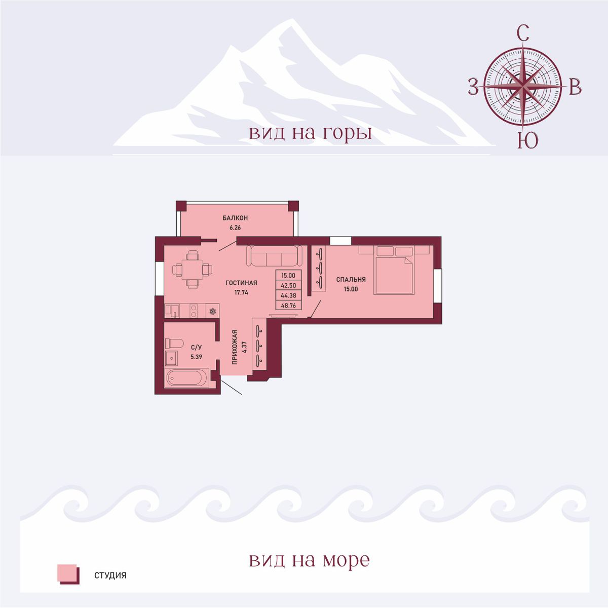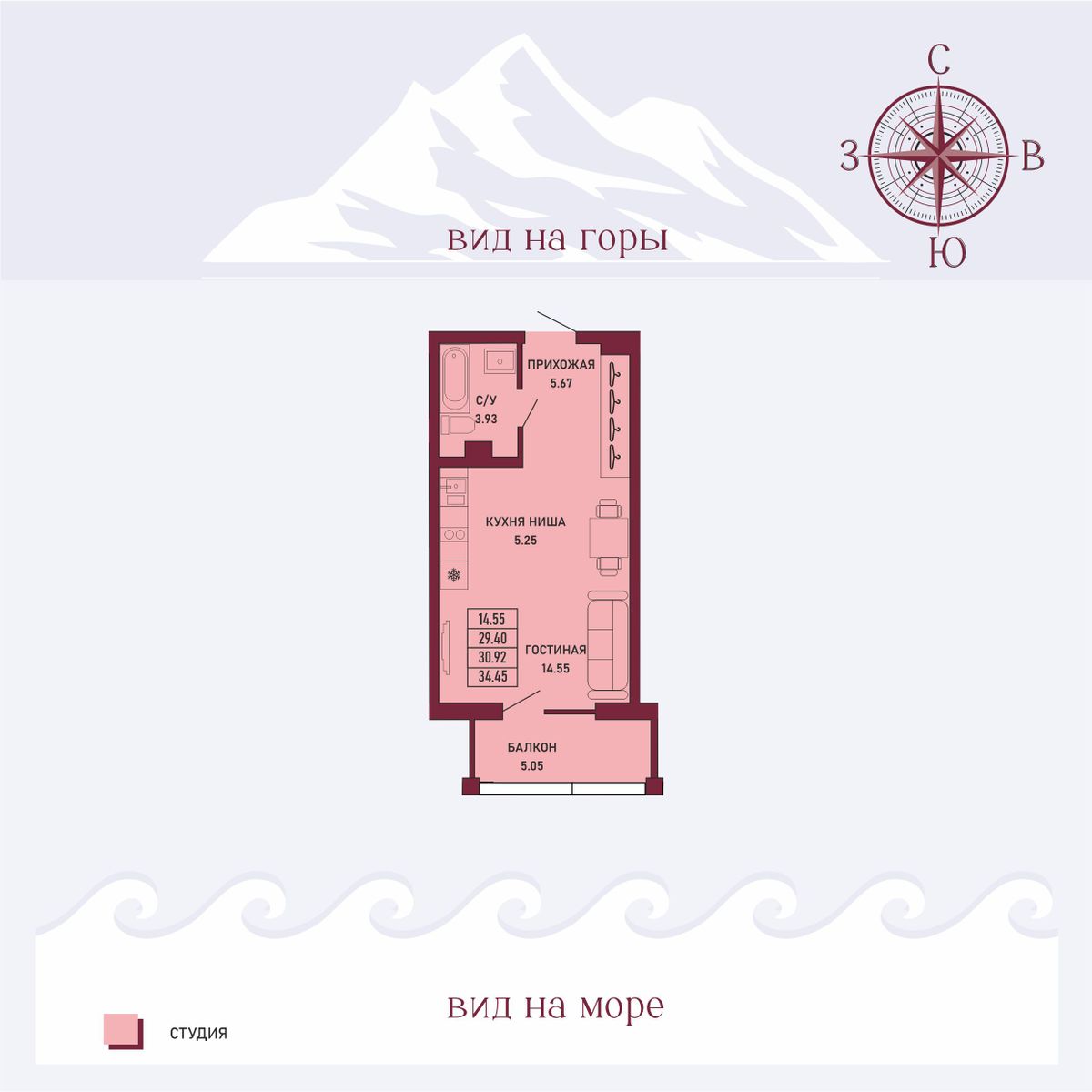 30–70 м² с потолками 2,8 м.